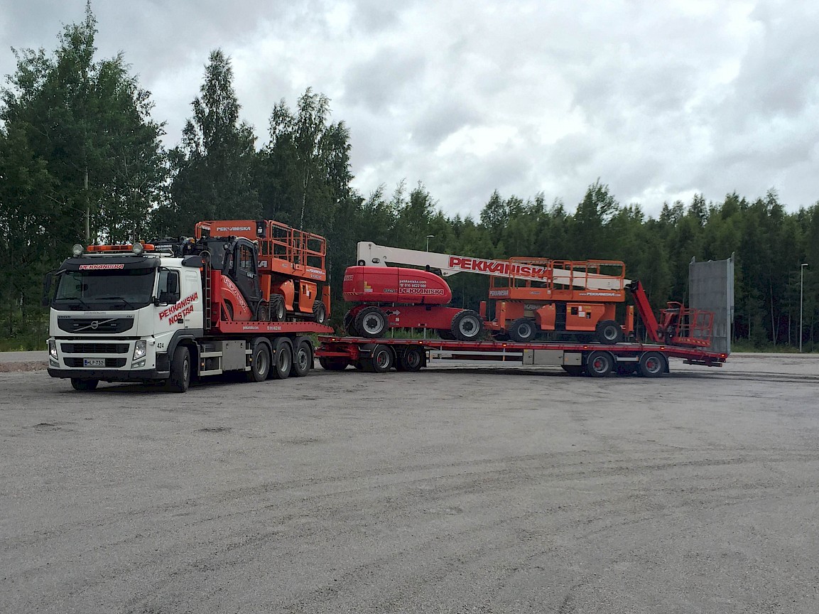 Kuljetusyksikkömme täydentyi loppukesästä uudella kotimaisella koneenkuljetusperävaunulla. Perävaunu on valmistettu Käyttöauton toimesta ja se on pitkälle räätälöity kuljetustehtäviemme mukaisesti. Perävaunu sisältää mm. seuraavia ominaisuuksia, jotka ovat suunniteltu helpottamaan kuljetusyksikön työtä: kauko-ohjattava ajosilta, henkilönostinkuljetuksiin suunnitellut sidontapisteet, automaattirasvari, wabco ebs-jarrujärjestelmä sekä ajovakauden hallinta.